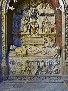 Il est surmonté d'un baldaquin d'albâtre, avec des dessins de Vigarny, réalisé par Juan de Rasines en 1513. Il est décoré de bas-reliefs relatant la vie du saint.