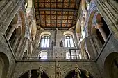 Seuls la crypte et le transept subsistent de l'église romane. La crypte, avec un plan à déambulatoire reproduisant jadis l'ancien chœur roman, est fréquente en Angleterre pendant la période romane mais extrêmement rare dans l'École normande d'où procède l'architecture religieuse dite normande en Angleterre. Le transept construit en deux campagnes avant la tour avec ses trois étages, ses baies en plein-cintre, sa coursive au niveau des fenêtres hautes et ses voûtes d'arêtes reproduit fidèlement celui de l'abbatiale Saint-Étienne de Caen. L'extrémité des croisillons est occultée par une tribune comme à Saint-Étienne de Caen, à l'abbaye de Cerisy-la-Forêt, à l'abbaye Saint-Georges de Boscherville et à la cathédrale de Lincoln dans son état primitif. C'est une disposition absolument usuelle à l'École romane normande[12]. Il semble que le chœur normand soit terminé à l'est par une abside ronde[11].