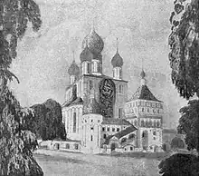 Le bâtiment en béton armé a été conçu dans le style des cathédrales de Rostov depuis l'avènement du tsar Michel Fiodorovitch Romanov selon le projet de Stepan Kritchinski (en russe : Степа́н Само́йлович Кричи́нский, 1874–1923).