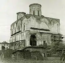 Après 1920, l'ensemble a subi des détériorations et a échappé de peu à la destruction complète. Sur cinq tambours seuls trois ont survécu[1]. Sur toute la hauteur de la cathédrale une fissure bien visible menaçait la destruction complète de l'édifice. Pendant la seconde moitié du XXe siècle, le bâtiment a été conservé en attentant sa restauration, les murs étant soutenus par des tirants métalliques et seul le chapiteau du clocher est restauré, mais pas les dômes caractéristiques des églises russes.