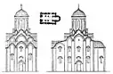 Les quatre piliers servent d'ossature à un bâtiment cubique. Mais les voûtes d'angles sont surbaissées comme c'était parfois le cas dans l'architecture russe pré-mongole. L'église de la Transfiguration à Polotsk est un exemple de cette technique