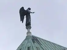 Grâce à la révolution industrielle et sa foi dans les possibilités architecturales de nouveaux matériaux incombustibles, l'architecte départemental Édouard Baron propose son remplacement par une charpente métallique de 600 tonnes de fonte et de fer laminé, et une toiture constituée de 11 000 plaques de cuivre. La charpente est réalisée de 1836 à 1841 par l'ingénieur Émile Martin et l'entrepreneur parisien de serrurerie Sylvain Mignon, tandis que Quenehen réalise la couverture en cuivre[38]. L'effort est soutenu par des dons et plusieurs lois de financement que fait voter le ministre des Cultes Sauzet, l'État propriétaire des cathédrales depuis le Concordat de 1801 prenant à sa charge une grande partie de la reconstruction[39].