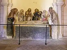 - le premier daté de 1444 relate les scènes de la Dormition, de l'Assomption et du Couronnement de la Vierge en trois registres superposés ; le retable est présenté dorénavant dans une des chapelles de la collatérale sud.