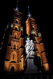 Elle a été construite en style gothique de 1244 à 1341 et constitue l'un des symboles de Wrocław. Ses tours jumelles, de 98 mètres de hauteur, marquent la physionomie de la ville.