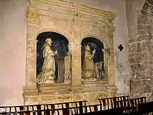 - statues XVIIe siècle dans le collatéral gauche représentant les évêques de Barthélemy Camelin (1599-1637) et Pierre (1637-1654) ;