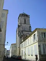 Le 8 octobre 1651, le gouverneur de La Rochelle, le comte du Daugnon, ayant rejoint le parti de Condé pendant la Fronde[8], fit supprimer les voûtes supérieures, les marches de l'escalier et plancher du clocher pour empêcher que des batteries placées à son sommet puissent menacer les tours du port où il s'était retranché[J 15].