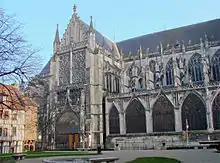 | Fin du IXe siècle | La cathédrale est endommagée lors des invasions normandes. | 1507 | La fabrique fait appel à Martin Chambiges afin de construire la façade. |