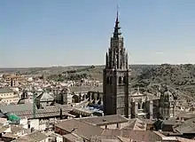 La cathédrale Sainte-Marie de Tolède est le siège de l'archevêque de Tolède qui possède le titre de primat d'Espagne, et ce depuis les Wisigoths qui avaient fait de la ville leur capitale politique et religieuse. L'édifice actuel fut bâti en style gothique à compter de 1226, à l'emplacement de l'ancienne grande mosquée de la cité. Aujourd'hui encore, la cathédrale de Tolède domine la ville impériale de sa haute flèche, et appartient au cercle des plus prestigieuses cathédrales espagnoles. Elle est classée sur la liste du patrimoine mondial de l'UNESCO depuis 1986, au même titre que l'ensemble du centre historique de la ville.