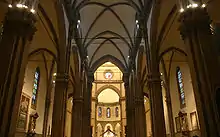 Après 1359 Giovanni di Lapo Ghini (1360-1369) succède à la direction des travaux, et termine les trois premières travées, dont la principale caractéristique est le plan presque carré au lieu des travées en rectangle très prononcées du gothique français, le modèle dominant de l'époque. Les immenses travées florentines (à peine trois mètres plus basses que les voûtes de la cathédrale Saint-Pierre de Beauvais, les plus hautes du gothique français) devaient couvrir un espace immense avec très peu de soutènement. La nef est donc pensée comme une salle dans laquelle les vides prévalent sur les néanmoins remarquables structures de l'architecture. Le rythme des soutènements est décidément différent de la forêt de pierre typique du gothique d'au-delà des Alpes, ou des églises fidèles à ce modèle, comme la cathédrale de Milan. Il n'y a pas de précédents du point de vue des dimensions et de la structure qui puissent être cités comme antérieurs à ce projet. En 1375, l'ancienne église de Santa Reparata est définitivement abattue. Les nefs seront complétées et couvertes entre 1378 et 1380.