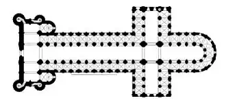 Les concepteurs redonnent à la nouvelle construction une assise plus large en enlevant les quatre piliers de la tour d'origine et en absorbant une partie des arcades voisines de la nef, du chœur et du transept dans un large octogone.