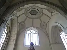 Le bras du XVIe siècle se trouve au nord-est et sa construction a entraîné la démolition d'une partie du mur de la nef. Il est construit en tuffeau et coiffé par une voûte en forme de coupole ovale. Cette coupole, divisée en caissons géométriques, comprend une ouverture en son centre. Elle était à l'origine munie d'un vitrail qui permettait un éclairage zénithal[4].