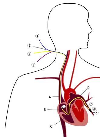 - et 1 - Ligne et lumières du canal proximal abouché au niveau de l'oreillette droite