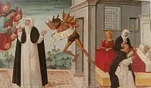 Les sœurs de la Pénitence de saint Dominique (surnommées les Mantellate du fait de leurs habits noirs, mantello en italien) ont pour fondateur Dominique de Guzmán (1170-1221), qui a aussi fondé l'ordre des Frères prêcheurs. Elles constituent alors un groupement pieux essentiellement composé de veuves qui ne suivent pas au sens strict une règle religieuse, dans la mesure où elles ne font pas de vœux religieux. Elles se consacrent aux œuvres de charité, aux visites des prisonniers ou des malades et se réunissent pour la messe et pour recevoir des instructions religieuses[B 9].