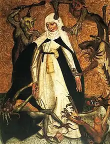 | Attributs | couronne d'épines, lys, stigmates, crucifix, chapelet |