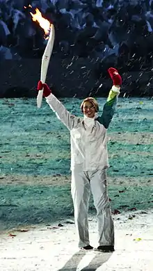 Catriona Le May Doan comme porteuse de la flamme olympique à la cérémonie d'ouverture des Jeux olympiques de 2010