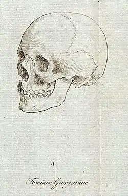 Il explique malgré cela que les « variétés » d'humains ne sont pas des groupes clairement divisés mais présentent une gradation[18]. Ses descriptions, quoique généralement factuelles à propos des crânes étudiés, montrent un biais clair envers le crâne géorgien dont il loue l'élégance[note 3].