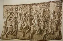 Cavalier romain en cotte de mailles. Détail du Tropaeum Traiani.
