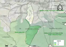L’inventaire des zones naturelles d'intérêt écologique, faunistique et floristique (ZNIEFF) a pour objectif de réaliser une couverture des zones les plus intéressantes sur le plan écologique, essentiellement dans la perspective d’améliorer la connaissance du patrimoine naturel national et de fournir aux différents décideurs un outil d’aide à la prise en compte de l’environnement dans l’aménagement du territoire. Deux ZNIEFF de type 1[Note 3] sont recensées sur la commune[24] : les « affluents et rivière de l'One » (61 ha), couvrant 12 communes du département[25] et les « massifs du Luchonnais et du Larboust » (16 267 ha), couvrant 13 communes dont dix dans la Haute-Garonne et trois dans les Hautes-Pyrénées[26] et une ZNIEFF de type 2[Note 4],[24] : la « Haute montagne en Haute-Garonne » (33 294 ha), couvrant 49 communes dont 41 dans la Haute-Garonne et huit dans les Hautes-Pyrénées[27].