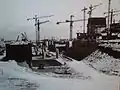 Construction de la salle des machines (au premier plan le groupe turbo-alternateur)
