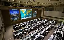 Le centre de contrôle du Centre spatial Lyndon B. Johnson à Houston (Texas) gère les missions du programme spatial habité américain (Station spatiale internationale).