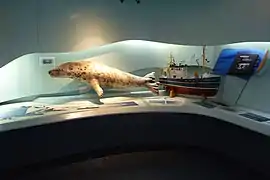Dans le Centre d’interprétation du phoque, il y a quatre espèces de phoque qui sont présentées. Ce sont les seuls mammifères marins présents dans les eaux du Golfe et/ou de l'estuaire du Saint-Laurent. Il s'agit du phoque du Groenland Pagophilus groenlandicus, du phoque à capuchon Cystophora cristata, du phoque gris Halichoerus grypuset du phoque commun Phoca vitulina, tous observables au large des Îles-de-la-Madeleine. Ces phoques sont des mammifères adaptés au cours de 20 millions d'années d'évolution marine[2].