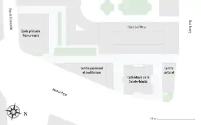 Le centre d'études russes qui est installé dans le bâtiment du côté de la rue de l'Université abrite le gymnasium classique, l'école paroissiale et propose des cours pour enfants et adultes sur la culture russe (langue, histoire, civilisation), la musique et le chant, l'art théâtral, l'iconographie, la culture chrétienne et d'autres matières[18]. Les salles de classe peuvent accueillir environ 150 personnes à la fois[19].