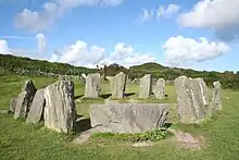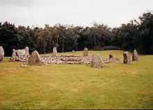 - (en) Cet article est partiellement ou en totalité issu de l’article de Wikipédia en anglais intitulé « Recumbent stone circle » (voir la liste des auteurs).