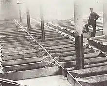 Pour quatre centimes, le sans-abri était autorisé à s'allonger sur le dos et à dormir dans une boîte en bois en forme de cercueil. Il recevait de la nourriture et une bâche pour se couvrir. Il s'agissait à l'époque du refuge pour sans-abri le moins cher de Londres. L'Armée du salut disposait également de refuges qui permettaient de dormir dans un lit, mais pour un prix beaucoup plus élevé. Par conséquent, la maison cercueil était populaire, car elle offrait une solution économique pour les sans-abris redoutant le froid[1].
