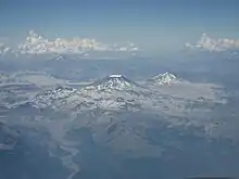 Vue aérienne du volcan. | ||