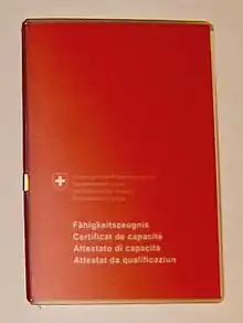 En Suisse, le certificat fédéral de capacité (ou CFC) est décerné à la fin d'un apprentissage d'une durée de 3 ou 4 ans après réussite de l'examen de fin d'apprentissage ou procédure de qualification équivalente suivie avec succès. Il est délivré par les autorités cantonales. Le CFC est l'équivalent, selon les cas, d'un BP (brevet professionnel) ou d'un baccalauréat professionnel français.