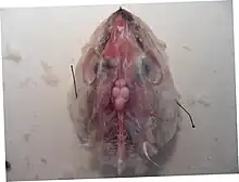 Un autre protostomien, le ver nématode Caenorhabditis elegans, a fait l'objet, comme la drosophile, d'études génétiques approfondies[12] car son plan d'organisation est très stéréotypé : le système nerveux du morphe hermaphrodite possède exactement 302 neurones, toujours à la même place, établissant les mêmes liaisons synaptiques pour chaque ver[13]. Au début des années 1970, du fait de sa simplicité et de sa facilité d’élevage, Sydney Brenner le choisit comme organisme modèle pour ses travaux sur le processus de régulation génétique du développement qui lui valurent un prix Nobel en 2002[14]. Pour ses travaux, Brenner et son équipe ont découpé les vers en milliers de sections ultra fines et photographié chacune d'entre elles au microscope électronique afin de visualiser les fibres assorties à chaque section et ainsi planifier chaque neurone et chaque synapse dans le corps du ver[15]. Actuellement, un tel niveau de détail n'est disponible pour aucun autre organisme, et les informations récoltées ont rendu possibles de nombreuses études.
