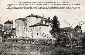- 1378 (13 mai) : au château de Lourdon, avec son fils Jean, le même Geoffroy de Lugny, écuyer, rend hommage à l'abbé de Cluny pour sa maison forte et dépendances.