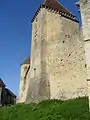 1er plan (de gauche à droite) : tour d'angle, tour rectangulaire, porte et tour des gardes. Arrière plan : grosse tour.