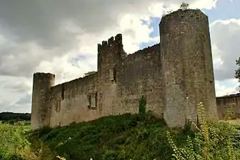 Sur chaque face, une tour carrée non saillante domine courtines et logis. Les murs de la courtine nord-est semblent avoir été surhaussés à plusieurs reprises. Les créneaux du premier chemin de ronde avaient été comblés.