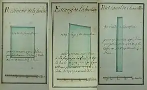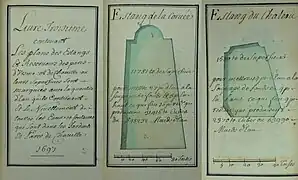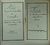 - Bibliothèque Méjanes d'Aix-en-Provence, références : N° CGM : 119 Autre cote : 451 Autre cote : R.328 Titre : [Traité des eaux de Chaville] Date : 1697 Langue : français Support : Papier Importance matérielle : Non paginé Autres caractéristiques matérielles : Plans coloriés, figures Dimensions : 153 × 90 mm Reliure : Reliure veau fauve, tranche dorée.