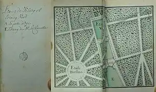 L'aménagement autour du nouveau château est connu principalement grâce à un plan "levé et dressé par M. De Roux, Garde du corps dans la compagnie de Noailles", repris par Le Rouge[3].