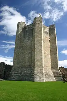 Le donjon de Conisbrough est positionné du côté nord-est de la cour intérieure[42]. Il s'agit d'une survivance médiévale importante : l'historien Sidney Toy le considère comme « l'un des plus beaux donjons d'Angleterre », l'archéologue Oliver Creighton le décrit comme un « joyau architectural » et Stephen Johnson comme « l'un des plus beaux exemples de l'architecture normande tardive »[43].