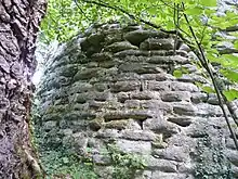 Seules les deux tours du nord subsistent en partie dans la forêt[3]. Elles atteignent une hauteur de six à sept mètres.