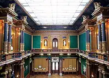 Derrière les façades de style néo-Renaissance prend place un escalier d'honneur, réplique de celui du Crystal Palace (créé par Joseph Paxton) de l'Exposition universelle de 1851 à Londres.