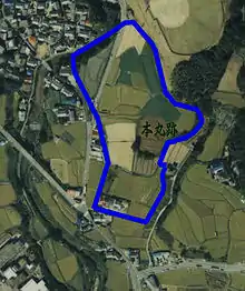 Photo aérienne avec le tracé du château de Fukui.