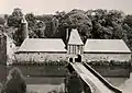 On pénétrait dans la cour du château par une poterne percée d'une porte piétonne et d'une porte charretière, chacune munie d'un pont-levis à flèches, comme l'attestent les rainures que l'on peut encore observer aujourd'hui. À l'ouest se dresse une tour d'angle, ancienne entrée du château dont la construction remonte à la fin du XIIIe siècle, qui présente une porte murée. À l'arrière, un petit pont à quatre arches, qui enjambe les douves, donnait accès au jardin à la française du château.