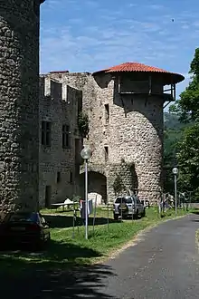 L'entrée du château était autrefois défendue par un pont-levis dont la fosse est encore visible.