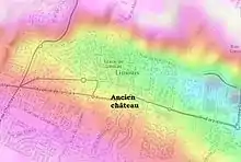 Schéma indiquant l'emplacement du château détruit avec le cadastre actuel.