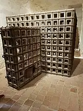 - le « petit donjon » , situé du côté nord, compte trois étages sur rez-de-chaussée et mesure 13,2 × 9,1 mètres[11]. Ses murs épais renforcés par des contreforts cylindriques en faisaient une forteresse imprenable pour l'époque. On y trouve, au niveau de la camera, la capella, dédiée à Saint-Salbœuf.