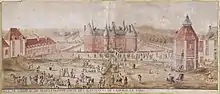 Le château par René-Louis de Voyer (dessin lavé à l'encre de Chine).