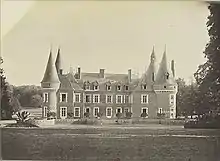 Extérieurement, M. Armand-Delille a procédé à une modification des toitures des tours d'angle sur la face nord pour les rendre moins élevées. La photo prise par Maurice Gasté les montre dans leur état primitif[57]. Les communs ont été modifiés harmonieusement par M. Henri-Lionel Latham, amateur de chasses à courre, qui a fait construire à l'arrière des écuries. Là encore, les matériaux utilisés sont le silex et les briques de différentes teintes.