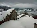 Le château de Mirabat est implanté au sommet d'un piton rocheux à 1242 m d'altitude près du tri-point des communes d'Oust, Seix et Ustou.