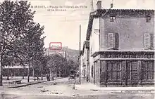En 1308[5],[note 3], Jean II, dauphin de Viennois, pour se venger de Guichard VI[note 4], sire de Beaujeu, qui avait pris le parti du comte de Savoie dans la guerre qu'il soutenait contre lui, vînt mettre le siège devant Miribel. Un traître lui en livra les portes. Quelque temps après, Guichard VI rentra en possession de la ville, mais il perdit bientôt tous ses droits de souveraineté sur elle, car, fait prisonnier à la bataille de Varey, il fut contraint, pour recouvrer sa liberté, de la prendre en fief du dauphin (1327)[3], avec tout son mandement, à l'exception seulement d'une tour carrée et de la petite poype sur laquelle cette tour était située « exceptis dumtaxat turri quadratu cum poypia parva in qua sita est dicta turris ». Cette tour était peut-être « la vieille tour de Miribel » que le sire de Beaujeu reconnait tenir du fief de l'abbé de l'Ile-Barbe, le [3], et « la petite poype » est sans doute le monticule élevé de main d'homme qu'on appelle aujourd'hui la Torche à Guillet.