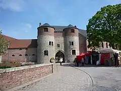 Le bâtiment d'entrée flanqué de deux tours a été inscrit monument historique le [1]