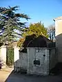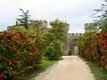 Enceinte surmontées de statues (lion appuyé sur un écu surmonté d'une couronne ou vases remplis de fleurs et de fruits)